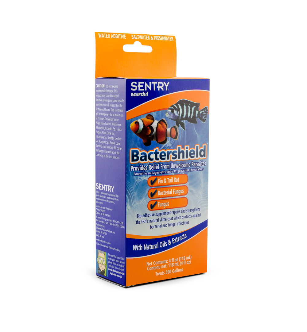 Bactershield® is a revolutionary new way to help maintain fish optimum health. Proven, natural oils and extracts are combined with a patented film forming matrix to help repair and strengthen a fish’s natural slime coat and help provide a protective shield around your fish. A fish’s slime coat acts as the first line of defense for fish against bacterial and fungal infections.