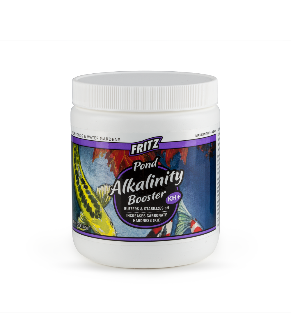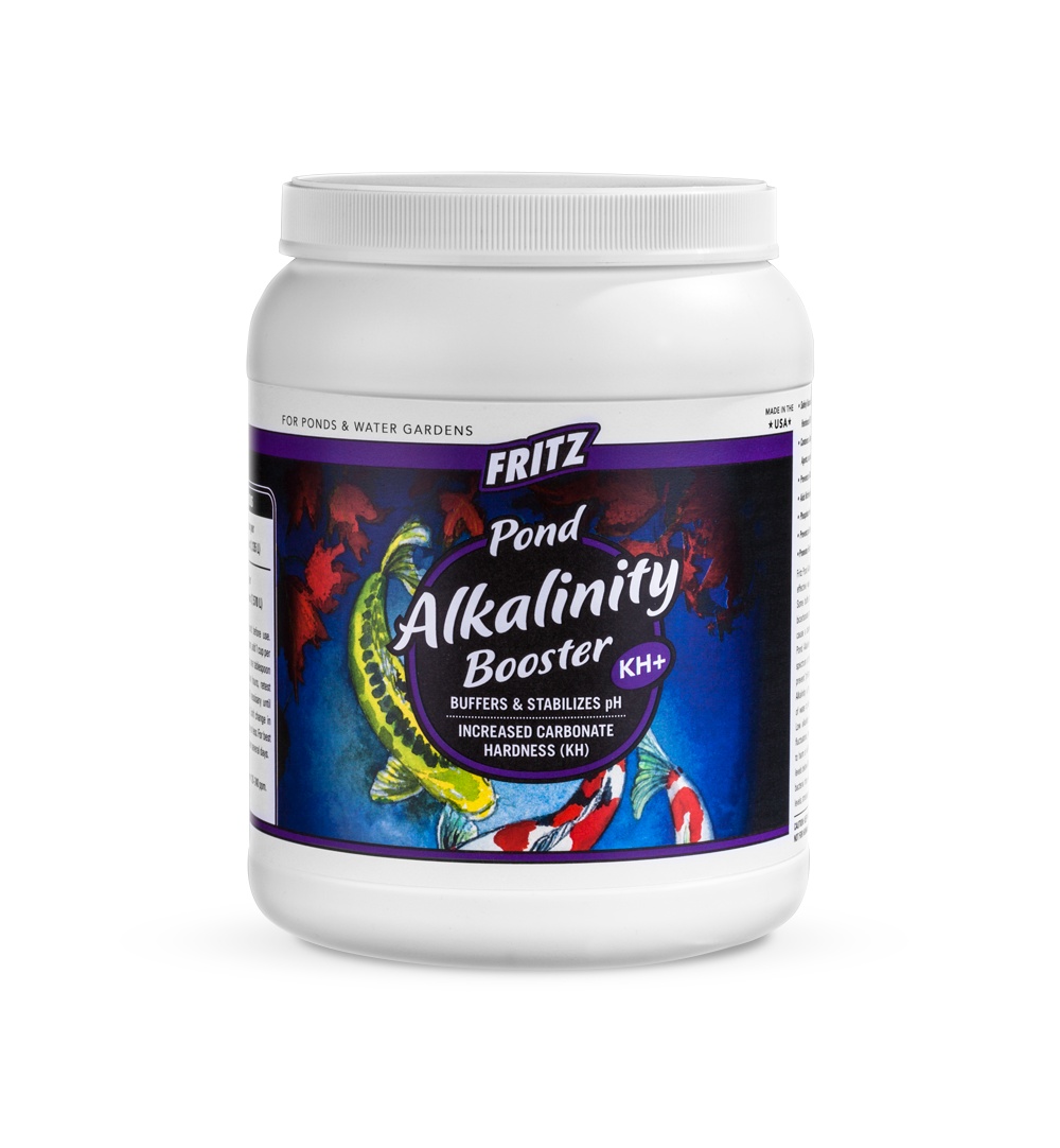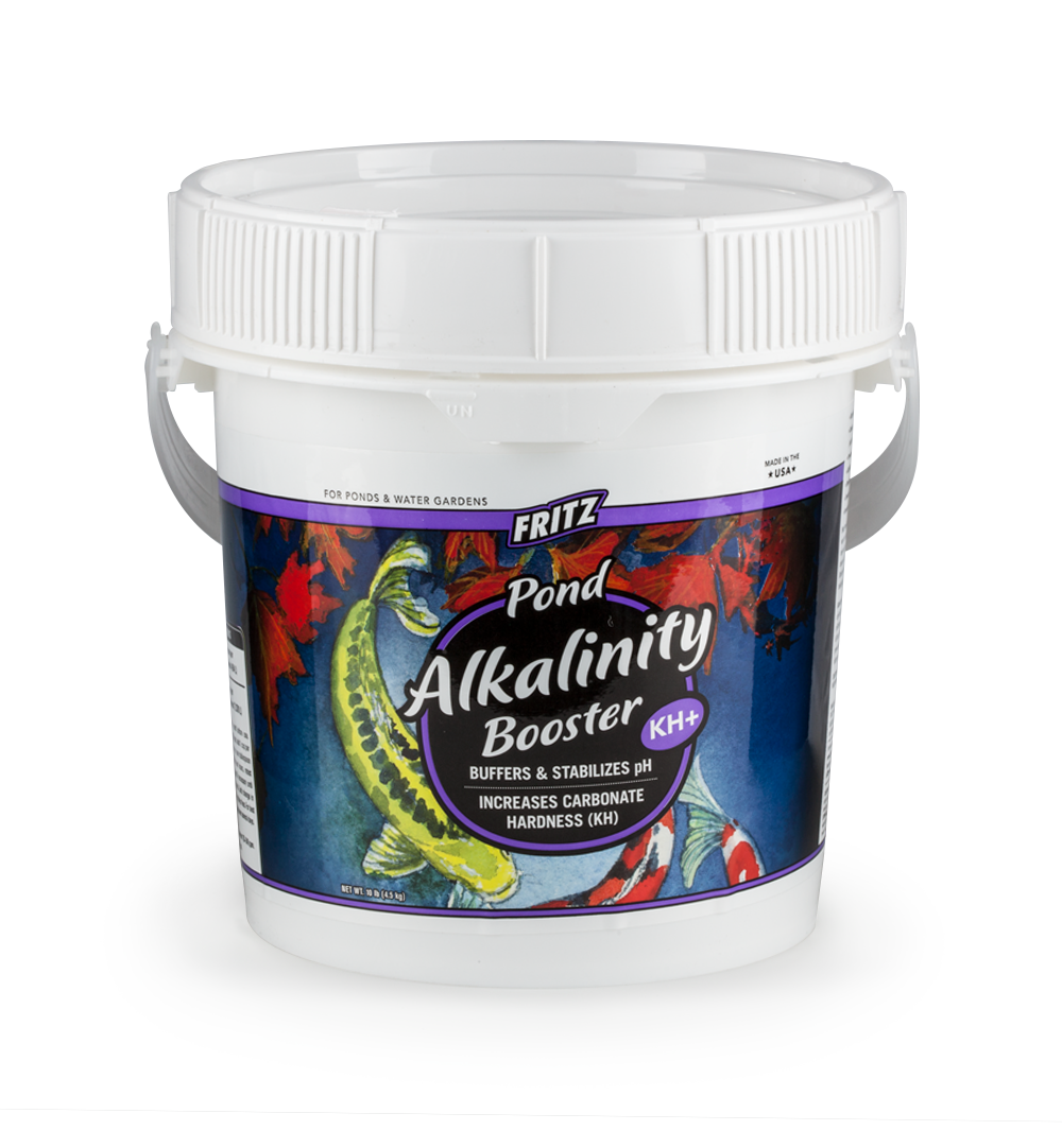 Fritz Pond Alkalinity Booster is a safe and effective way to raise pond alkalinity. Some buffer products use only sodium bicarbonate to raise alkalinity, which can cause a dangerous “pH bounce”. Fritz Pond Alkalinity Booster contains a full spectrum of buffering agents, helping to prevent “pH bounce.” Alkalinity is the measure of the ability of water to hold a pH of 7.0 or above. Low alkalinity levels may result in pH fluctuations, sometimes severe enough to harm or kill fish. In addition, alkalinity levels below 80 ppm will prevent nitrifying bacteria from effectively reducing nitrite levels, stressing and endangering fish.