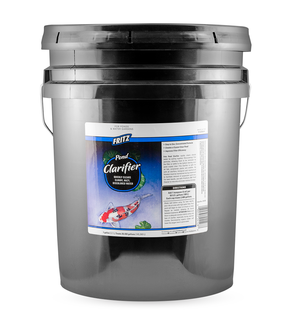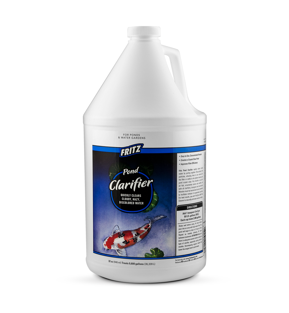 FritzPond Clarifier rapidly clears cloudy water by pulling together (flocculating) fine particles, allowing them to be removed by the filter or settle to the bottom leaving your pond crystal clear. Safe for all fish, ornamental plants and wildlife.
