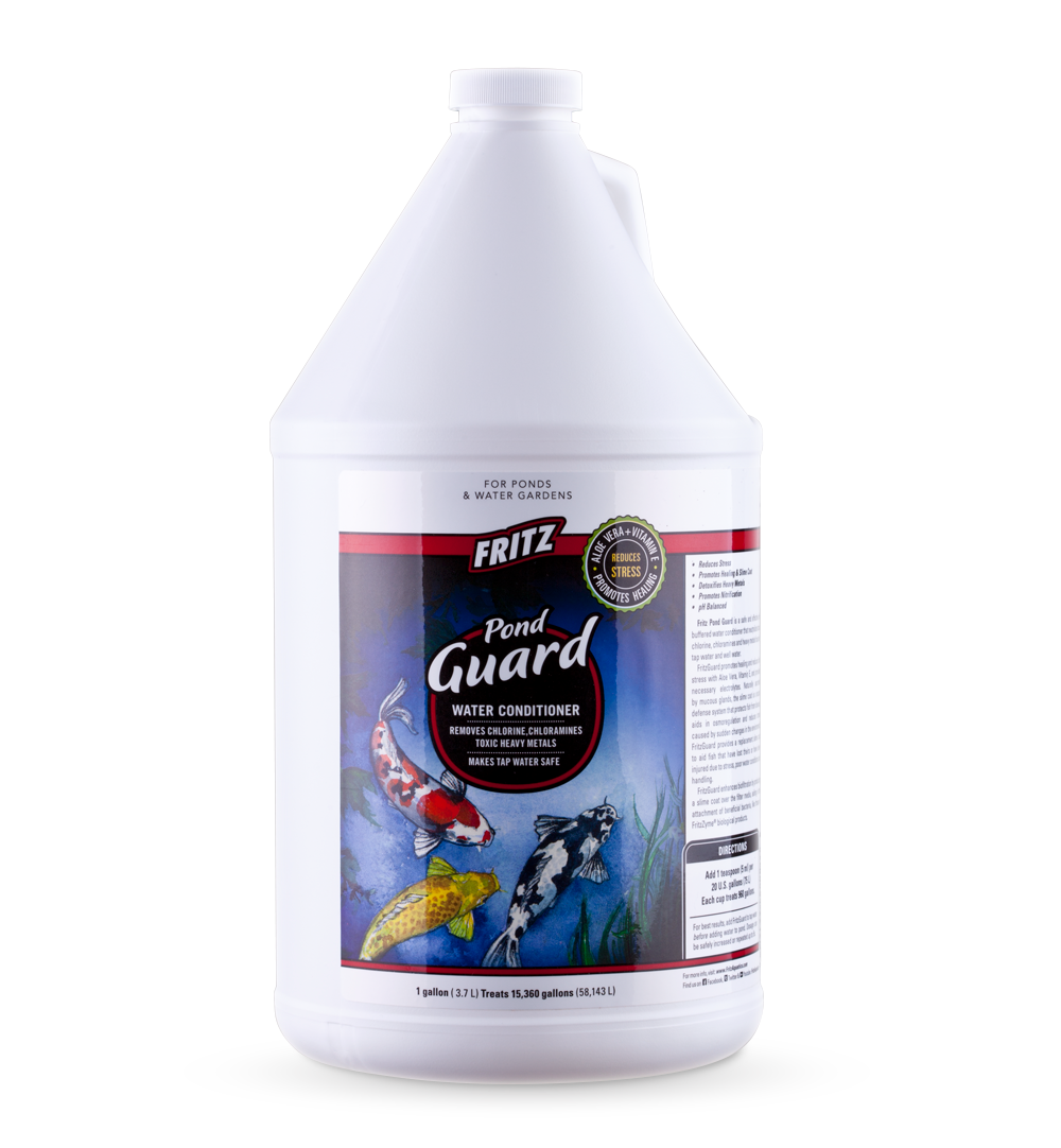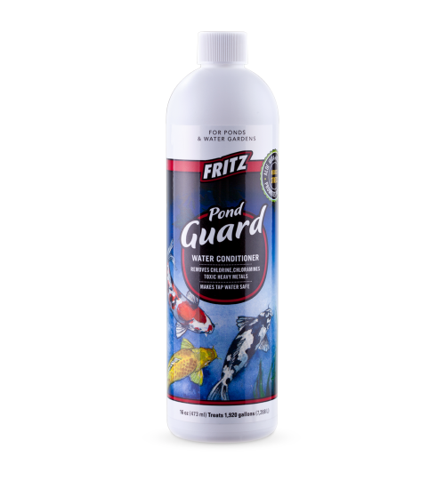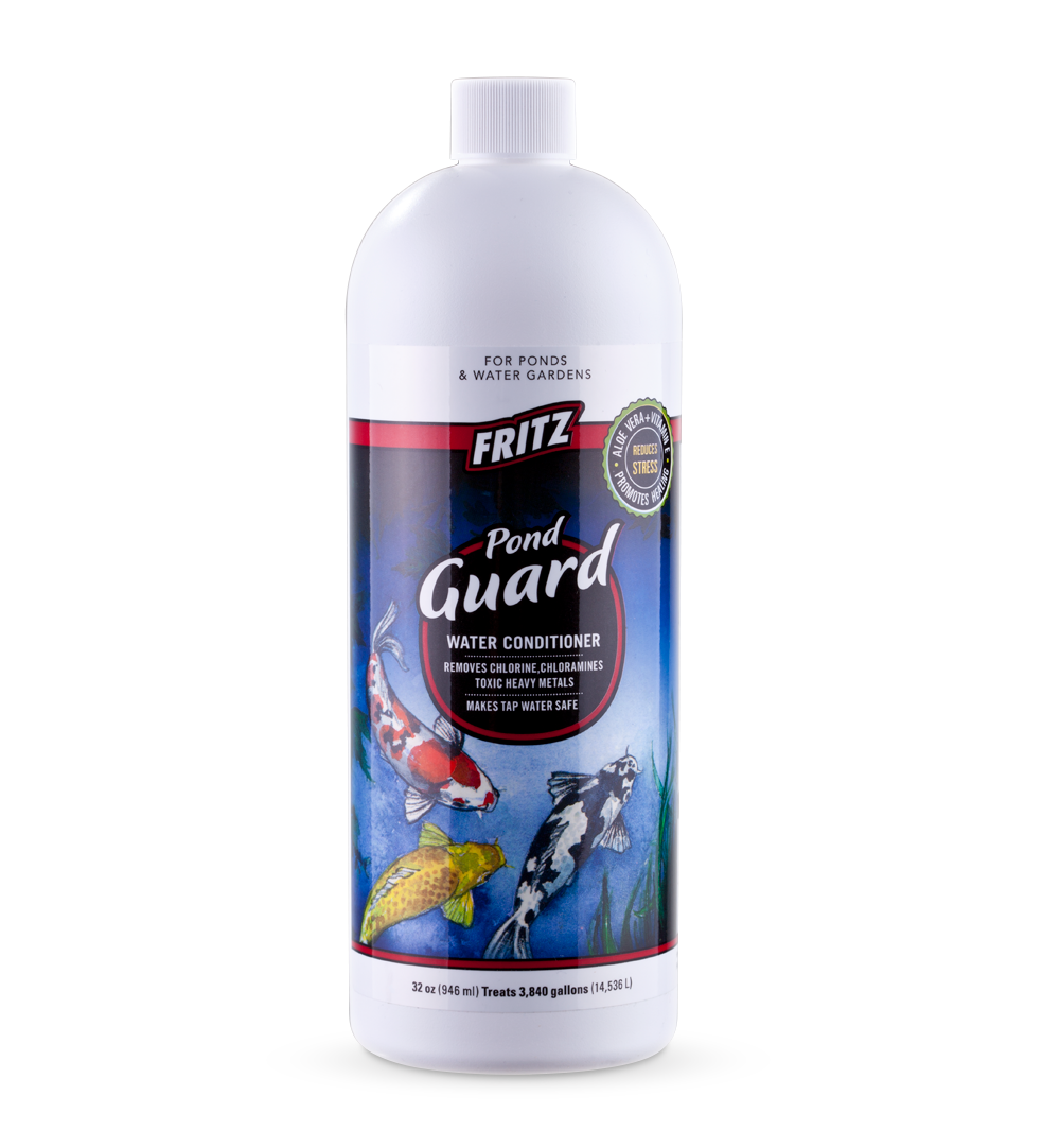 FritzPond Guard neutralizes toxic chlorine, chloramines and heavy metals found in well or tap water. FritzPond Guard also reduces fish stress and promotes healing with aloe vera, vitamin E and necessary electrolytes. FritzPond Guard provides a replacement slime coat to aid fish that are stressed, making it ideal for calming fish during transport. Enjoy all the features of FritzPond Guard in a new concentrated formulation of our water conditioner, specifically for ponds.