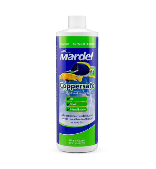 The unique formulation of Mardel Coppersafe® solution maintains a total copper level of .15 ppm to .20 ppm when used as directed. Copper test kits that measure chelated copper will help you to actively monitor copper levels when using Mardel Coppersafe® solution.